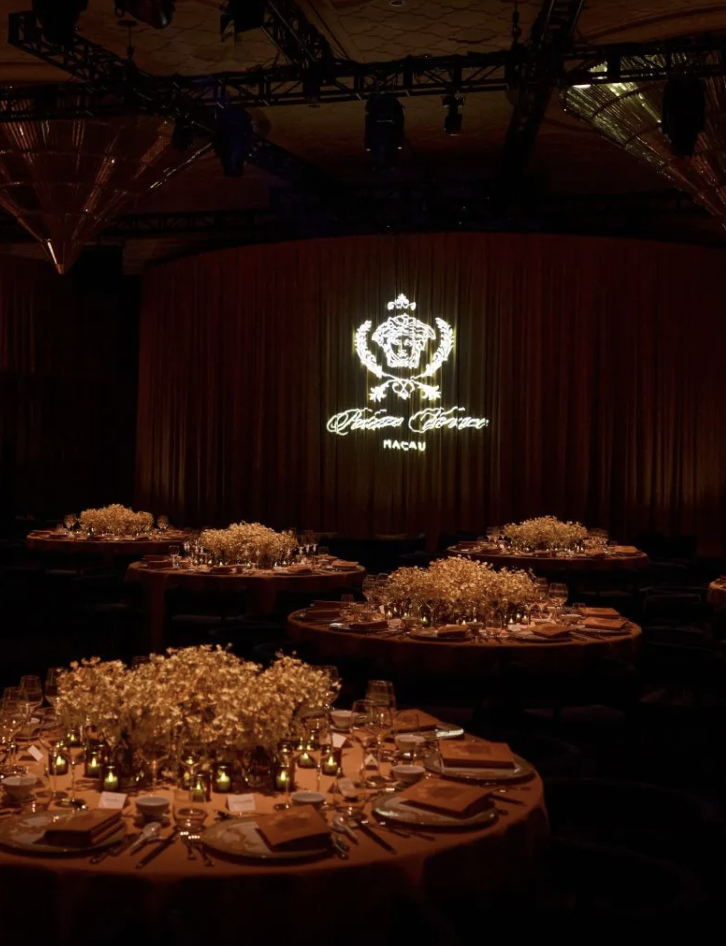 Welcoming guests to the opening event was a golden dragon sculpture perched on top of Romanesque columns surrounding the mosaic-embellished outdoor pool, as a nod to the Year of the Dragon. A glass catwalk was installed over the pool, which provided a unique spot to take photos. At the Jardim Secreto, harpist Dan Yu, accompanied by a quintet of musicians from the Macau Orchestra, greeted guests with thrilling performances. As the evening went on, guests were led to The Grand Pavilion for Versace Signatures. The space set the stage for an inspiring exhibition showcasing the house’s iconic designs, from emblematic prêt-à-porter pieces to those from Atelier Versace.